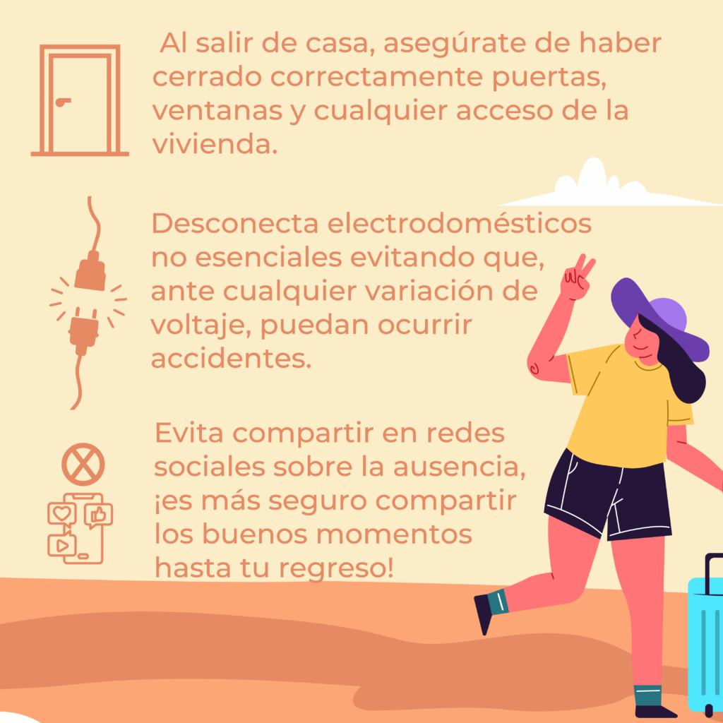 • Emite una serie de recomendaciones para cuidar la casa al salir de viaje.