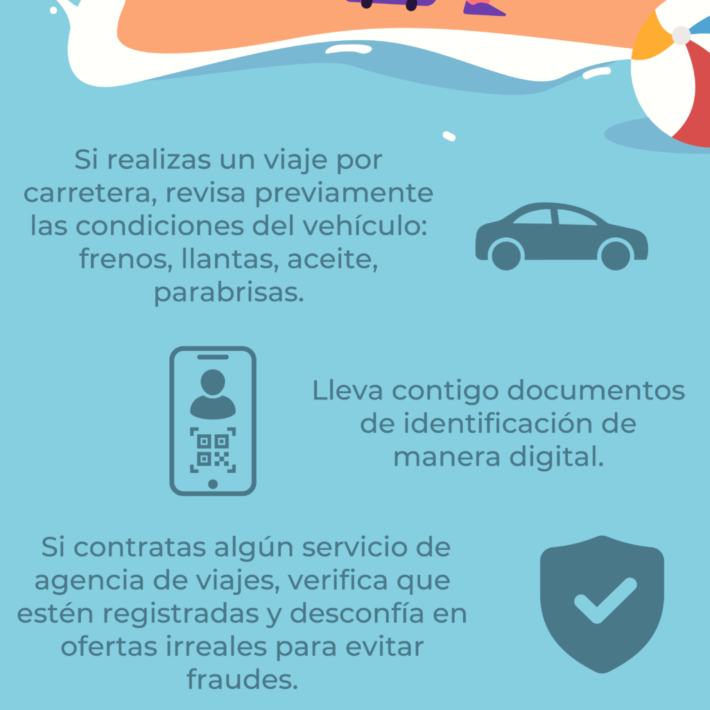 • Si se contrata algún servicio de agencia de viajes, verificar que estén registradas y desconfiar en ofertas irreales para evitar fraudes.